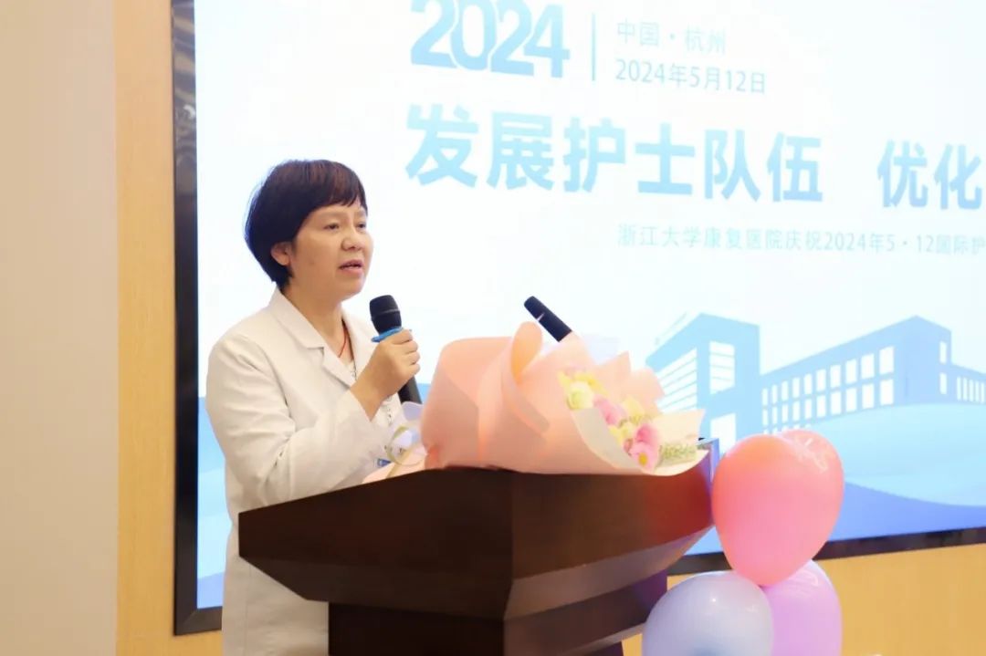 林建强院长首先致辞,他向奋战在护理临床一线的全院护理人员致以节日的祝福和亲切问候。他表示,我院发展至今取得了不错的成绩,这些成果和突破,离不开广大护理工作者辛勤的付出。未来,浙大康复将继续为大家提供一个优质的成长平台,同时也希望大家能坚守初心,脚踏实地,勤奋工作,坚持学习,不负重托。